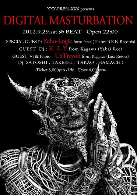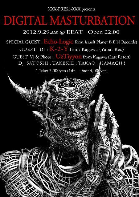 ÂÔ¤Á¤ËÂԤä¿XXX-PRESS-XXX¤Î2012ǯ¤ÎÊÑÂÖParty Digital Masturbation!!¤¬¤è¤¦¤ä¤¯·èÄꤷ¤¿¡ª¡ª TAKAO¤ÈHAMACH¡ª¤¬¹âÃΤΤ¢¤é¤æ¤ëÈ¢¤ò°Û¶õ´Ö¤ËÊѤ¨ Dj & Audience ¤Î»ë³Ð¡¢Ä°³Ð¤òÈȤ·! ¥ª¡¼¥¬¥Ë¥º¥à¤ËÅþ㤵¤»¡¢°Í¸¤µ¤»¤¿¡ª ¤¢¤ÎÊÑÂÖ°Û¶õ´Ö¤¬Ìó°ìǯ¿¶¤ê¤Ë9·î29Æü¤ÎÌëBEAT¤ÇºÆ¤ÓÁɤ롪¡ª Special Guest¤Ë¤Ï²¿¤È¡ª¡ª Psychedelic TranceÂç¹ñ¡¡¥¤¥¹¥é¥¨¥ë¤«¤éEcho-Logic¡ÊPlanet B.E.N Records¡Ë¤¬ Immigration¤ò¥®¥ê¥®¥ê¤Î¥é¥¤¥ó¤ÇÆÍÇˤ·¤¿¡ªKiller Track¤ò°ú¤Ã¤µ¤²¹âÃΤγ¹¤Ë¹ß¤êΩ¤Ä ¥ä¥Ä¤Î²»¤òʹ¤¤
