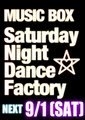 【MUSIC BOX】Saturday night dance factory は現状のクラブイベントとは違います。 往年のダンスシーンを復活させ、音楽性を重視した更に high+sense でアットホームな空間をご提 供したい!そんな真っ直ぐで熱い気持ちをもって望みます! 〜第二章〜 http://m.youtube.com/watch?v=0QejC3iJC6U 音楽で人と人の輪を繋ぐ、音楽を通じてコミュニケーションを取る そして!日常では味わえない音楽との新たな出会い。 そんな思いを込め、その空間を Saturday night dance factory では 【MUSIC BOX】と定義し推奨して行き