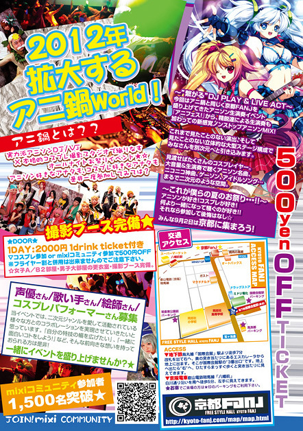 入場料金無料(Free Entrance)、No Charge, All Drink 500 Yen