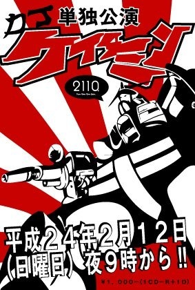 2012年2月12日 時間21:00〜3:00 ■party DJケイタミン単独公演 ■date 2012.02/12(sun) 21:00- ■venue 2110. ■fee 1000yen(1cd-r+1d) http://on.fb.me/z8FWxm