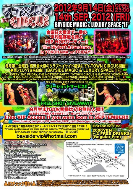 横浜最大級のクラブベイサイド横浜にて9月14日(第二金曜日)、Y-TOWN CIRCUSが開催!!