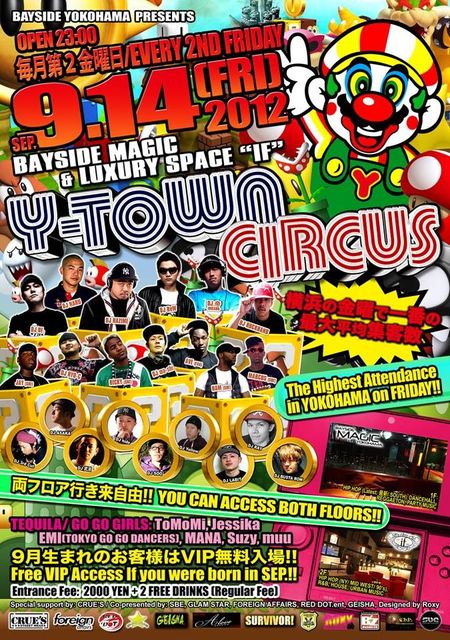横浜最大級のクラブベイサイド横浜にて9月14日(第2金曜日)、Y-TOWN CIRCUSが開催!!