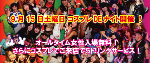 さらにコスプレで御来店の女性には5ドリンクサービス9月15日土曜日