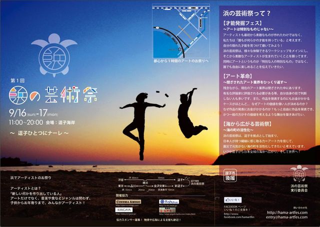 9月の3連休、9/16(日)17(月)に湘南・鎌倉の隣 逗子海岸の浜辺で 「浜の芸術祭」http://hama-artfes.com/?p=180 というアートフェスイベントを開催します! ハンモックとか水たばことか、染め物とかヘンプ編みとか。 ウクレレやゴスペルライブ 夜は影絵とかファイヤーダンスがある予定です。 新宿から湘南新宿ラインで1時間、東京から東海道線で1時間。 ちょっと電車に乗るだけで、そこにはのんびり素敵な海と空が待っています! 湘南とはまた違う、ちょっと大人なゆっくりした海です。 そんな逗子に魅せられ移住し、都内で働き