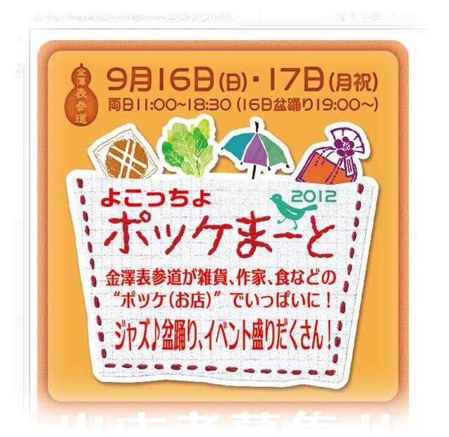 9/16日 17月 11時〜18時30 金沢表参道(金沢旧横安江町) http://yokoccho.collabon.com/