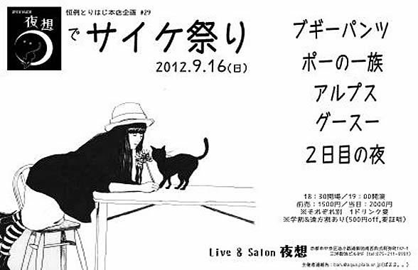 open18:00/start19:00/adv¥1500 door¥2000(ともに+1drink¥500)