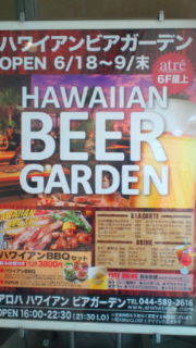 お待たせ致しました 前回第4回が延期になってしまったため、今回は第4.5回開催いたしますー まだまだ残暑厳しい日が続きますが 9月中旬となれば少しは涼しい風の中ビアガーデンを満喫出来るのではないでしょうか 川崎駅直結のアトレでやりますので、仕事帰りに是非とも遊びに来てください 今年最後のビアガーデンを楽しみましょう 9月21日(金) 20時から2時間 アトレ川崎(旧川崎BE)6F屋上 アロハハワイアンビアガーデ