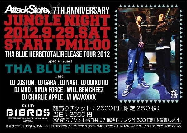 前売りチケットお問い合わせ:CLUB BIBROS(クラブビブロス)089-948-0788 / AttackStore(アタックストア)089-932-8290