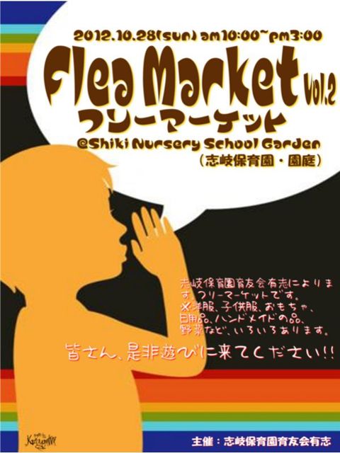 管理人様、告知失礼いたします。 イベント告知です(#^.^#) 来る10月28日(日曜日)に苓北町の志岐保育園の園庭にて フリーマーケットを開催いたします。 主催は、志岐保育園育友会の有志です。 お近くにお住まいの方は、ご近所お誘い合わせの上、遊びにきてください(*^^)v 尚、不適切な場合、管理人様削除願います。