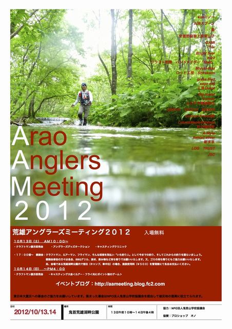 今年も『荒雄アングラーズミーティング』の季節がやってまいりました。 今年からは有志のアングラー・クラフトマンさんたちの運営で開催される運びとなった模様です。 運営お手伝いの方々の中にも「宮城の渓流フィールド」コミュに参加者の方もいらっしゃいますし、この機会にぜひ実際にお互い会うことができれば、と思いますので、皆さんお誘いあわせの上是非とも行ってみましょう!!