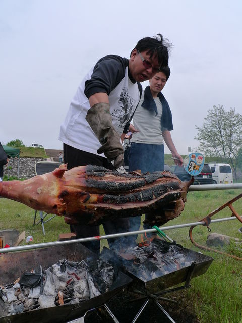 それは、果てしない夢。 丸焼き・・・・・ それは、遥かなる希望。 人類が火を手に入れた太古の昔より、延々と繰り返されてきた神聖なる儀式、丸焼き。 誰もが一度は夢見て、そして涙と唾をのんであきらめてきた丸焼き。 だって、食べきれないもの・・・・・・・。 でも、もし、ひとりじゃなかったら・・・・・。 同じ志を持つ仲間がいたら・・・・・・・・。 出来るかもしれない? 食べれるかもしれない?? いや!! 出来るっ!!!! 遥か彼方に見えた夢の光景が、 今!! 手の届く場所にあるのだ