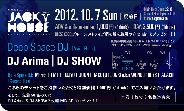 チケット持参&alife memberの方はDJ Arima DJ SHOW二枚組MIX CDプレゼント!!!