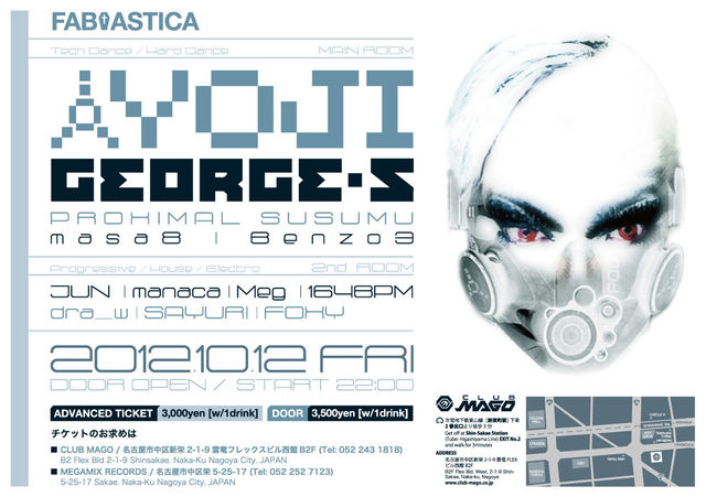 伝説のパーティー『FABTASTICA』、秋の開催が決定!!!!! かつてのLONDONの『TRADE』さながらに、スーパーTOUGH&ウルトラHARDなGROOVEが、クローズドな空間に鳴り響く! 『コアなクラウドが熱狂する高密度な空間は日本随一!』と、世界のYOJIも太鼓判を押すパーティーレジェンド"FABTASTICA"。その秋の開催が決定した!このフリーキーな一夜を体験せずして、クラビングは語れない! [Main Room] YOJI / GEORGE-S / Proximal Susumu / masa8 / Benzo3 [2nd Room] JUN / manaca / Meg / 164BPM / dra_w / SAYURI / FOXY DATE: 2012-10-1