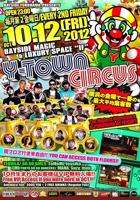 横浜最大級のクラブベイサイド横浜にて10月12日(第二金曜日)、Y-TOWN CIRCUSが開催!!