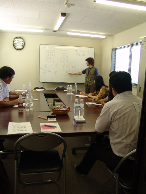 ハングル朝活@仙台 「1時間で覚えるハングル 」 韓流ブームにのって韓国語を覚えようとしている人も多いかもしれません。 旅行会話を学びたい。韓流ドラマを直接理解したい。韓国人と友達になりたい等、目的は様々でしょうが、まずは韓国語の文字であるハングルから覚えましょう ハングルはひらがなやアルファベットと違い、人工的に作られた文字なので非常に論理的で、20数個のパーツとそれらの発音や配置の法則さえ覚えれば、韓国語のすべてを表記できる便利な文字です。漢字の部首に似た形をしたものも多いので、日本人にはとても覚えやすい