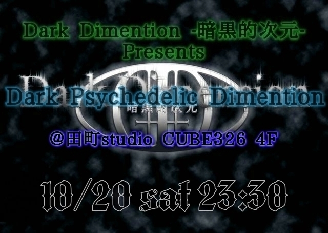 Dark Dimension-暗黒的次元- Presents -Dark Psychedelic Dimension- 2012.10.20(SAT) OPEN/START 23:30 @STUDIO CUBE 326 4F[Minato-ku kaigan 3-2-6] ■CHARGE DOOR: ¥3500- GUEST LIST: ¥2500- (出演者までお問合せ下さい。) Private Message or Email Artists or DJ's for discounts. 【GENRE】Dark Psy Trance ■DJs ・DAHLIA (Dark Dimension) ・Evil Fairy a.k.a Shin (小姐台風/Aurolabo-st) ・Baboooo (Twist Edge) ・Siki (Rituals The Head Shop) ・わっふる (G-SPOT) ■VJ ・思考サコ (