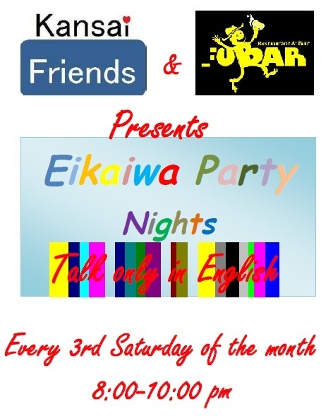 日本語は英分の後になります。 English is a very important language. We all need English to speak in our daily life or some special moments.指でOK However some of us are very shyげっそり when it comes to speaking. Kansai Friends now organises a party where SPEAK ONLY IN ENGLISH is the rule. Japanese people can practice speaking in ENGLISH with native speakers of English or other fellow Japanese ...& English teachers have the chance to meet their potential future students. NATIVE ENGLISH TEACHERS are FREE