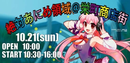 最近千葉のいろいろなところでアニソンイベントを行っている絶対あにめ領域!! 今回は千葉の栄町商店街を歩行者天国にして道路のど真ん中でDJします!! この日の絶あには盛り沢山!!アニソンDJをはじめ、 笑わナイトさんとのコラボでお笑いライブ、アニソンコピーバンドも無料で楽しめちゃいます!! すぐそばで同日開催のフリーマーケット、よさこい祭りもあります!! 楽しそう!!歩行者天国の両サイドは飲食店も出るみたい!! イベントの楽しみ方は自由!!大好きな曲がかかったら歌ったり、ヲタ芸を打ったり、 ダンパイベント