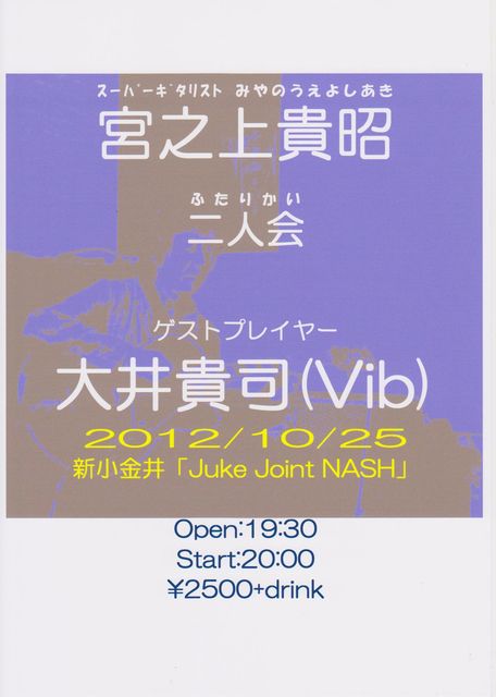 25日(木)Jazz 宮之上貴昭「二人会」 宮之上貴昭(G) 大井貴司(Vib) Open;19:30 Start;20:00 ¥2500+drink