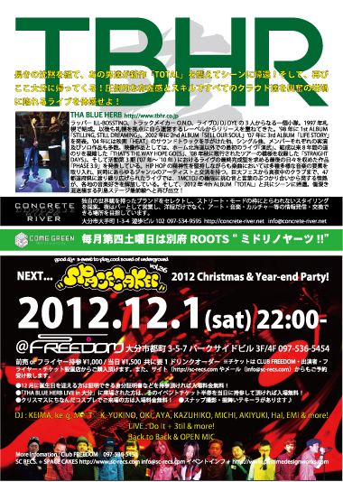 チケット取扱い : Club FREEDOM、CONCRETE RIVER、フライヤー設置店、各出演者 ※SPACE CAKESサイトのお問い合わせフォームからのご予約も受け付けます。