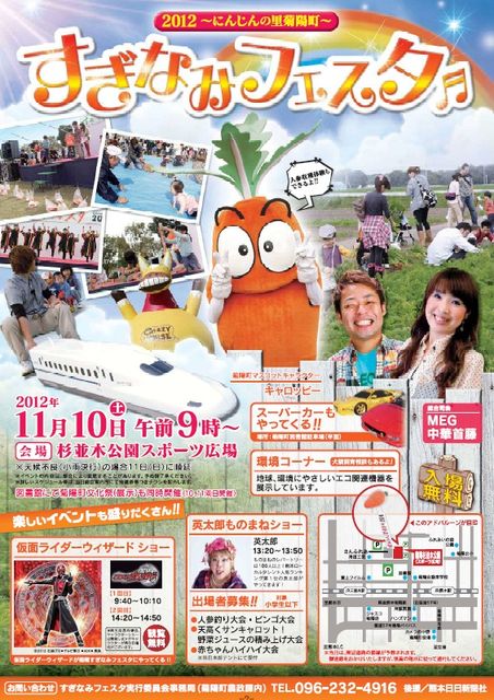 --------------------------------------------- 「すぎなみフェスタ」 11/10(土)@杉並木公園スポーツ広場 9:00〜15:30 ※入場無料 ※英太郎のものまねショーは13:20からの予定です。 (問)すぎなみフェスタ実行委員会事務局 (TEL)096-232-4916 --------------------------------------------- J太郎