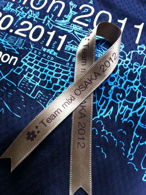 集合場所など詳細案内をmixi登録メールに配信しました。届いてない、分からない方がいれば連絡下さい。今後、更新があれば登録メールにお送ります。 オリジナルリボンは11月10日(土)で締め切りました。沢山のご希望を頂きありがとうございました。尚、結団式の参加は15日まで受け付けます。当日、キャンセルが発生すればお分けする予定です オリジナルリボンをウェアに付ける安全ピン、両面テープの準備は各自でお願いします。 大変お手数をお掛けして申し訳ありませんが、よろしくお願います。写真が参考になる