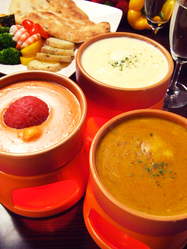 貴族の食べ物!チーズフォンデュ&3時間飲み放題へ行ってみヨーカドー! ※2度づけ禁止 限定激安2800円! オオーw(*゚o゚*)w 皆でガヤガヤ!ワイワイワイルドに! 身も心もホクホクしましょう〜! (。・・。)ポッ <コースmenu> 【1】旨塩やみつき枝豆 【2】帆立と甘海老の地中海カルパッチョ 【3】新じゃがスパイシーフリッター 【4】選べるチーズフォンデュ ⇒プレーン/豆乳/カレー/トマト ※スタンダードも良し!未知の味へチャレンジも良し! 【5】海老とチキンの生春スイートチリロール 【6】トマトとにんにく赤唐辛子のペン
