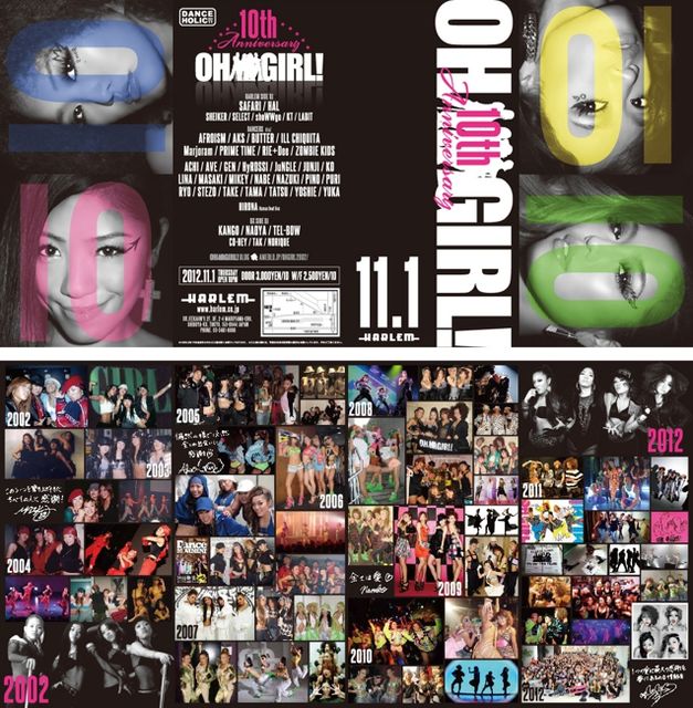 東京いや、日本を代表するGIRLSチームOH GIRL!が2012年結成10周年を迎えます!! 10th anniversaryを記念してHARLEMにてTONIGHT ONLYなSPECIAL PARTYを開催!! お祝いに駆けつけてくれるメンバーも蒼々たるメンツです! DANCERだけではなく、DJも東京を代表する面々ばかり! 東京NO.1 DANCE PARTYのDANCE HOLICからSAFARI、HAL!さらにBXではDJ KANGOが登場!! 有り得ない事が起こるのが正にこのPARTY!! ここでは書ききれない豪華メンバーが続々決まってます! 11/1!正にNO.1なPARTYがここHARLEMで…お楽しみに!! ☆★☆