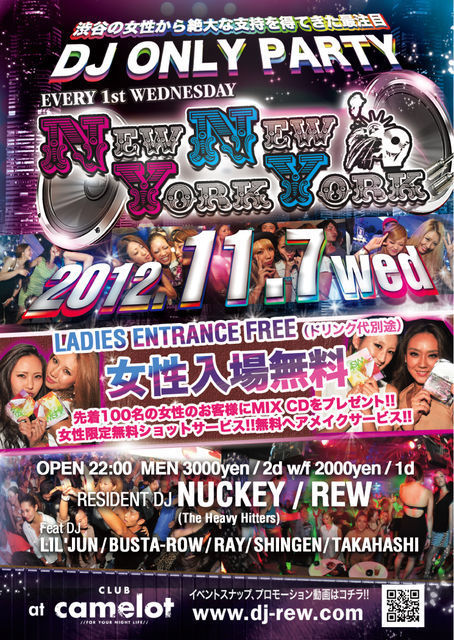 11.7(水)渋谷camelot女性入場無料!!毎回満員御礼の鉄板DJ ONLY HIPHOP PARTY"NEW YORK NEW YORK"