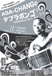 管理人サマ失礼いたします☆ 東海地区のタブラボンゴファンの皆様☆ ASA-CHANGのタブラボンゴワークショップ名古屋場所のお知らせです ASA-CHANGやっとかめの名古屋上陸☆ ASA-CHANGのタブラボンゴワークショップ @大須・麻芽2階・賽の目 2012年11月8日(木曜日) 19時オープン・19時半スタート 参加費 生徒…3000円 見学者…1000円 (それぞれドリンク代別途500円) 見学者の方もタブラボンゴに触れる 体験コーナー有☆ ASA-CHANGの面白トーク爆発!! この機会にASA-CHANGに遭遇しましょう☆ 平日でなかな