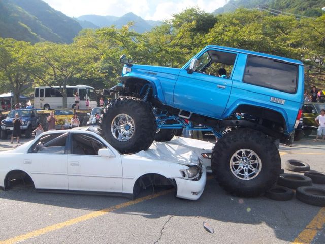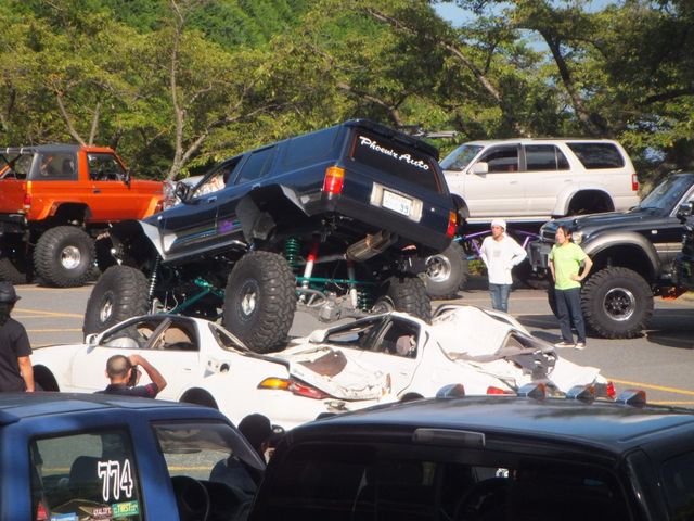 オートレジェンド2012に展示していた車を、セントレアで走らせようと言うイベントです スーパーカー、ドラッグマシン、旧車等が、いつもは展示しているだけで走っている所を見る事がないと思いますが、今回はそれらが走ります エキゾーストノートを聞くだけで鳥肌が立つほどの爆音や匂い・・・たまらんですね そんな中で、番組「薬師寺モータース」さんから、またまたカークラッシュの依頼 うちにオファーが来たら、同時にハイリフトも行きますよ 日本で一番でかい奴ばかりを一同に集めますわ もちろん「薬師寺モータース」