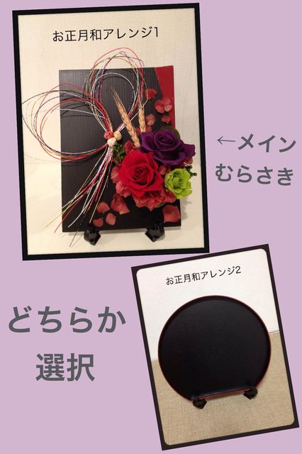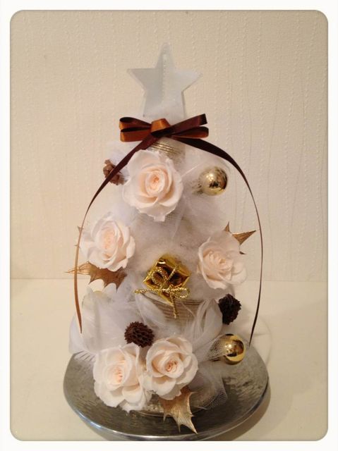 11月、12月の教室のご案内です。 今回は、3つの課題を準備しました★ 下記よりお好きなアレンジをお選びください。 A)クリスマスツリー(高さ20cm) 花材:バラ小5輪、綿、羽、リボン、クリスマスアクセサリー 材料費:2500円 *選択事項* 今回は、ホワイトorレッド の2種類から選択して下さい。どうしても、他の色がいい方はご相談下さい。 制作時間:2時間程度 B)お正月和アレンジ(1.高さ25cm×横20cm 2.高さ20cm×横22cm) 花材:バラ大1輪、中1輪、小1輪、あじさい、グリーン、水引、苔玉 材料費