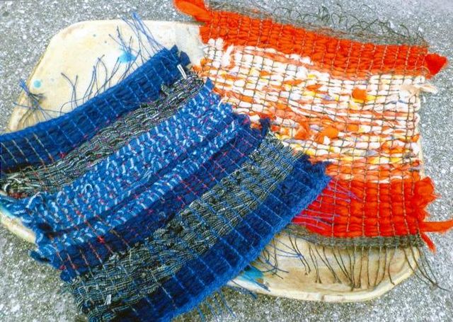 【リユーズの布などを使って、手織りの楽しさを体験!】 初心者の方を対象に、簡単な織機を使って、手織りの布づくりの楽しさを体験していただきます。一本の糸から、身近な材料(リユーズの布等)を使って、布が織り上がるまでを、わかりやすく指導いたします。織り上がった布は、ミニマットや小さなタピストリーに仕上げます。 ◆講師:岡みちこ 東灘区在住。テキスタイルアート&クラフト艸(そう)を主宰、染織、繊維造形作品の制作発表を行っている。1991年、兵庫県新進芸術家海外留学等助成制度一期生として、ロンドン大学ゴールドスミスカレッ
