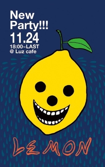 「 LEMON 」 2012.11.24(sat) 17:00 open 18:00 start @ Luz cafe adv: 1000yen (with1drink) DJ's 上田 歩(twinkle boys)/k-taboy/大北 篤/岡村 哲也/山田 諒/上田”dash"走(vienda!)/DJ 今更/米村 直樹/and more... 鳥取に新たなムーブメントを巻き起こすFreshなNew Party!!Lemon!! 2012年11月オーガナイザーayumu、k-taboyを中心にようやく始動。 生音を中心に、それぞれのDJがジャンルにとらわれない「アーバンでメロウ」なMusicをお届け、たまにお恍け(オトボケ)します。 当日はLuz cafeにてデイタイム開催のイベントにな