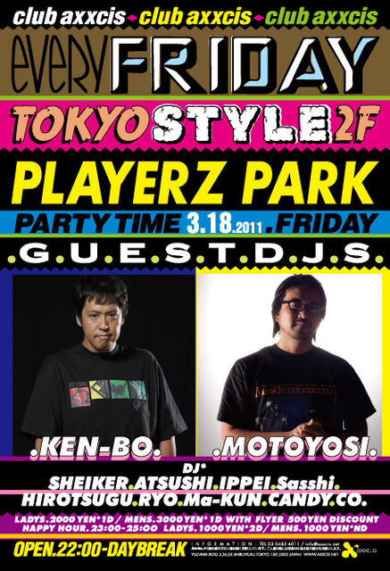 今週金曜日も 最近最も流行っている金曜アクシスで遊んじゃいましょう♪ 自分にメッセージを頂ければ、格安のディスカウント入場料金でご案内致します。 メッセージのやり取りが面倒な方は、 当日アクシスのエントランス(入口)で 「センセーショナルのゲストで」 と伝えて頂ければ、男女問わずに誰でもディスカウント価格で入場できるように なってますので、是非ご利用下さい♪ 詳細 今週も金曜日に「TOKYO STYLE」が開催されます!! 毎週金曜日開催のBIG PARTYです!! 皆様、ご連絡頂ければ、何名様でもお得な