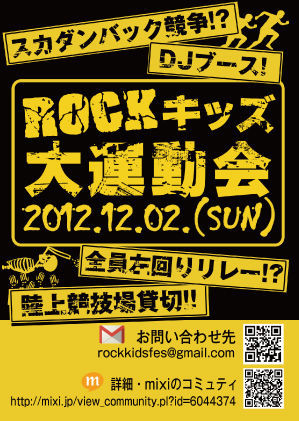 **2012/11/29** 二次会についての案内追加!! 重要なのでチェックしてね!! **2012/11/28** ★プログラム★ ♪タイムテーブル⇒http://fast-uploader.com/file/6909664788470/ ♪個人種目参加者一覧⇒http://fast-uploader.com/file/6909755757001/ 11/29赤一部更新 ♪種目別ルール説明⇒http://fast-uploader.com/file/6909844543995/ ♪左回りリレー走順エントリーシート【見本】⇒http://fast-uploader.com/file/6909666553483/ ♪持ち物・注意事項⇒http://fast-uploader.com/file/6909665543990/ 当日競技場でのプログラム