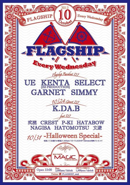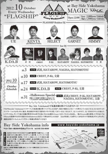 管理人様、告知失礼致します。 毎週水曜日開催 『FLAGSHIP』@ BAYSIDE YOKOHAMA MAGIC ★☆★☆★☆★☆★☆★☆★☆★☆★☆★ 入場の際にエントランスにて 【 シミーのゲスト 】 と言えば通常¥2000/1dのところを 「 ¥1000/1d 」 と大変お得なゲスト料金で入場できます! お気軽にご利用下さい♪ ★☆★☆★☆★☆★☆★☆★☆★☆★☆★ ---------- 7月よりBayside Yokohamaにてスタートした毎週水曜日帯イベント"FLAGSHIP"。 現在の横浜CLUBシーンを牽引しているDJ UE & DJ KENTAのコンビ