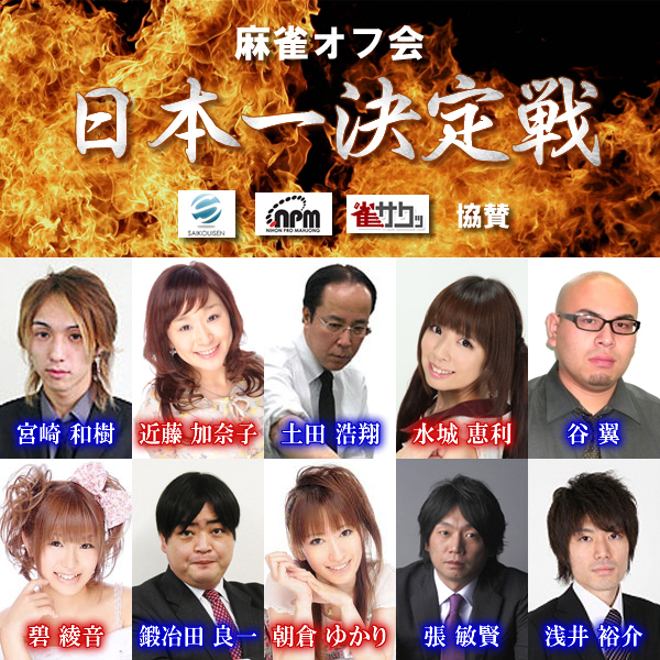 第2回麻雀オフ会☆日本一決定戦開催 1部予選を勝ち抜いて、本戦出場→優勝を目指そう 本戦は有名プロ&実力派シード選手との真剣勝負!! 各強者を倒し、麻雀オフ会☆日本一に輝くのは誰だ!(´゚Д゚`)ンマッ!! ZOO池袋東口店3階(20卓)を貸切りました〜 超豪華ドリームマッチ 今年も開催が決定した麻雀オフ会日本一