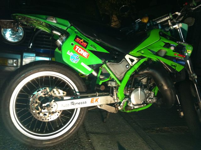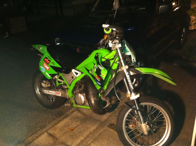 ・メーカー名: 川崎重工 ・車名: kawasaki KDX125SR(モタード) ・車体番号: DX125A ・年式: 1991年 ・自賠責: 平成26年8月まで ・色 : 緑×黒 ・走行: 約29400km ・自走: 可能 ・2st/4st:2st ・書類: あります。 ・事故歴:不明。中古購入のため ・エンジン: チョーク+キック一発でエンジン始動し、吹け上がり良好で異音無し。 KDXの持病のサイドベアリングシール交換済み! 25000キロの時点でkipsオーバーホール! クラッチ版交換済み! チャンバー洗浄済み! ・オイル: YAMAHA赤缶使用。 ・F/Rタイヤ