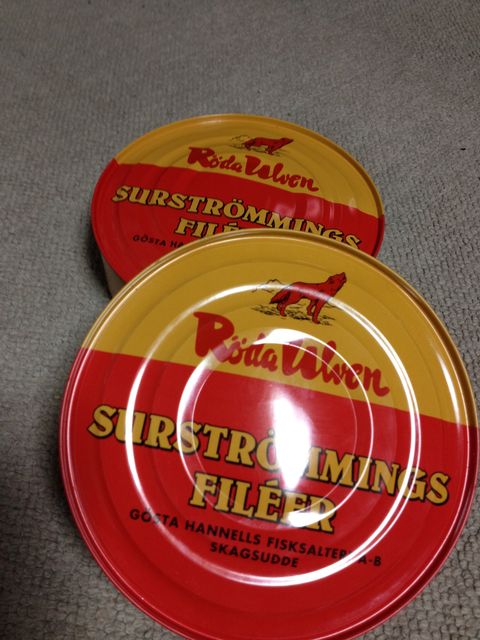 食べる化学兵器、シュールストレミングを2缶(600g)手に入れました。 ニシンを塩漬けにして缶の中で発酵させ、世界一臭いスエーデンの食べ物です。 1人じゃ怖くて開けられないので、一緒に食べてくれる犠牲者を募集します(^-^)/ バラエティ番組で芸人のリアクション用の小道具としてよく使われるのですが、本当はどんな匂いなのか以前から気になっていました。 発酵して缶が風船みたいに膨らんでいて、開けた瞬間中のガスと液体が飛び散ります。 屋内だと二度と部屋が使えなくなるそうです。 服も二度と着られなくなります。 周りに