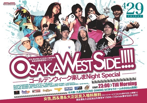※【最新イベント内容、情報などはコメント欄をご覧ください】 女性,西&港&大正区民入場料無料毎週金曜OSAKA WEST SIDE開催! 大阪・九条南SOUND DINING M(京セラDomeの200m西) 〜RUB−A−DUB オープンマイク〜 早い時間はゆっくりしたLOVERS,R&Bから、後半はOLDES〜BRAND NEW までレゲエ好きはもちろん、レゲエを知らない人も楽しめる内容です! クラブ初心者やクラブデビューの方にもお勧めです! ! レゲエダンスを知らなくてもメインタイムのダンスチューンはみんなで レクチャーありなので安心です! START