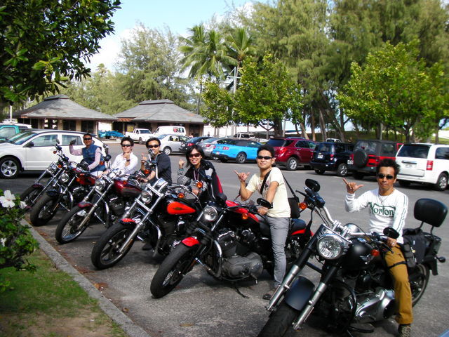 ハワイはアメリカなのでせっかくだからハーレーに乗っちゃおうという企画です。 日本の中型自動二輪の免許があれば国際免許なしで乗れちゃいます。 おまけにノーヘルで乗れるのは唯一ハワイ州だけです。 (※サングラスやメガネなどのアイプロテクトは必要です) 2007・2008・2010と企画して毎回とても思い出に残るイベントとなってます。 今年もマラソンの次に楽しみな企画です。 1日借りればオアフ島一周でき絶景を堪能できます! (AM8:00〜PM6:00) 10時間借りれるお勧めレンタル店 http://www.chasehawaii.com/