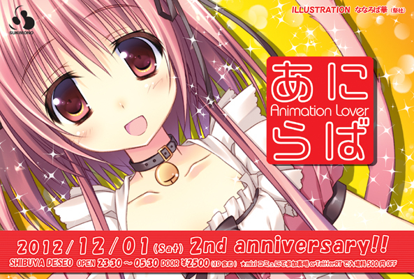 あにらば -Animation Lover vol.24 あにらばも今月で2周年!! 強力なDJ陣が勢揃い、お祭り気分で盛り上がりましょう! アニソン原曲寄りのRuby Floor、A-POP寄りで多ジャンルのSapphire Floorの2フロアで楽しめますのでみんなで思いっきり高まりましょう! あにらば-AnimationLover-はアニソン原曲を主軸にした東方やボカロ、美少女ゲーム系の曲も掛かるDJイベントです。 最前列でタテのり、ガチ打ちするも良し♪ 後ろで好きな曲を噛みしめつつ、ニコニコするも良し♪ 好きな曲に身を任せて適当にゆらゆらす