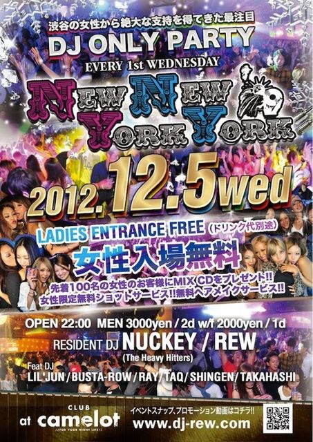 12.5(水)渋谷camelot女性入場無料!!毎回満員御礼の鉄板DJ ONLY HIPHOP PARTY"NY NY"