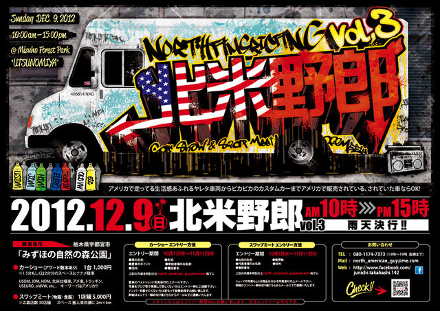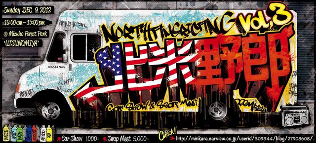 北米野郎 VOL,3 宇都宮みずほの自然の森公園 USDM JDM 北米仕様車 アメ車 トラッキン ホットロッド USユーロ 空冷&水冷オールドVW etc... アメリカで走ってる生活感あふれるヤツレタ車両からビッカビカのカスタムカーまで アメリカで販売されている・されていた車ならエントリーOK☆ キーワードはアメリカ☆ 場所 : 宇都宮みずほの自然の森公園 日時 : 12月9日(日) 10時〜15時 カーエントリー & バイクエントリー 1台 1000円 *1.5