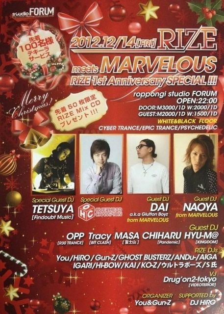 『RIZE meets MARVELOUS』-1st Anniversary Special - Special Guest DJに、サイバートランス界の大御所!DJ TETSUYA!