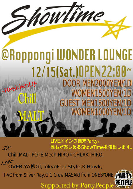 12/15は渋谷二箱(アトラス&グランデ)同時開催!しかも行き来自由!!B.G&STARLINEが渋谷をジャック