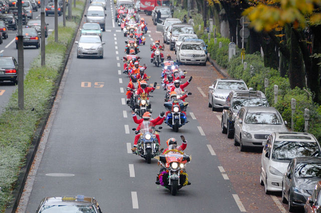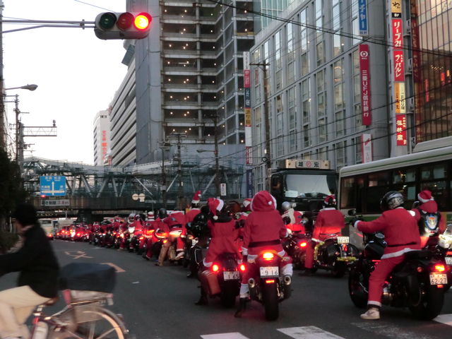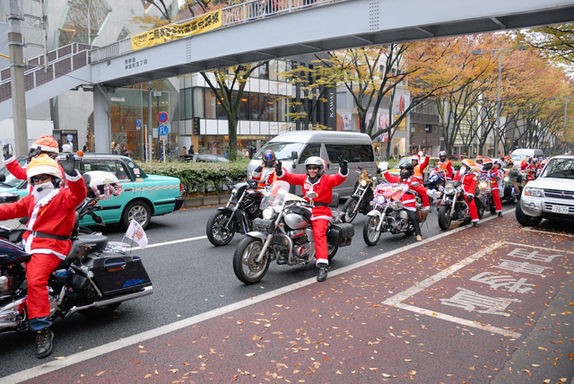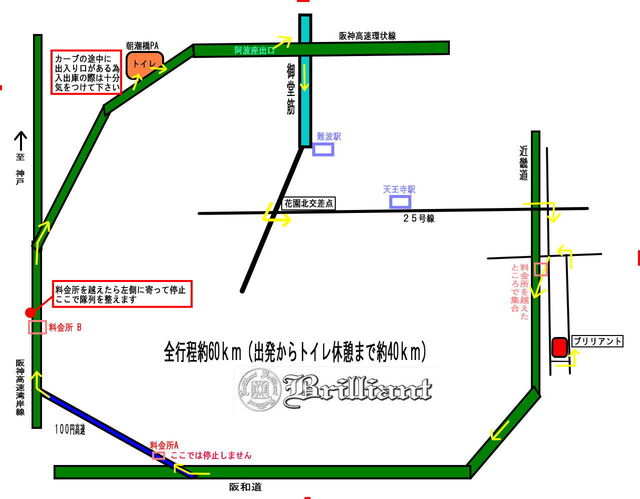 サンタクロースラン開催しまーす 詳細がきまりましたのでお知らせします 日時:12月23日(日) 集合:ブリリアント 13:30よりルート説明及び注意事項説明開始 出発:ブリリアント 14:30 参加費:¥500(ブリリアント ワッペン付) (集まった金額の一部を東北地方太平沖地震の復興に寄付します) 【新ルート】 ブリリアント→長原IC→堺泉北有料道路→阪神高速湾岸線→朝潮橋PAでトイレ休憩→ 阿波座で降りて→御堂筋南下パレード開始→そのまま25号線から中央環状線→ブリリアント 【重要なお願い】