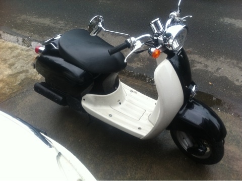 車名:ジョルノクレア 白(ベージュよりです。)/黒 総走行距離:約7300km(走行距離300km程のとき、バイク屋で新古車として購入しました。メーター読みではなくこれが実走距離です。) 程度:カウルの左右にコケ傷有ります。 1m離れたところから見てもわかんない微傷、年相応の錆はあります。 シートにパット見気付かないような傷あります。 全体的に見てもツヤがあり、綺麗な部類です。 最高速:無風だとして平地で約58km、一般的な登り坂で約50km、下り坂で約61km 燃費:1lで35km前後かと思います。 電装関係:全て問題ありません。 その他不