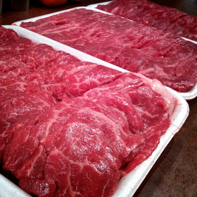 お鍋が最高に美味しい季節になってきました 年末、スタミナ鍋企画、弟3弾 今回は、群馬県の『赤城牛』をすき焼きで楽しみたいと思います 群馬県渋川市の鳥山畜産さんの牛です http://akagigyu.ib.shopserve.jp/ 今回は、脂身が多いところは避けて、赤身でしっかりとした旨味のモモ肉を楽しみます 国産牛肉でも、コスパがよく、たくさん食べられるお肉を選びました お肉は多めに用意します 安全で美味しい、国産牛を気軽に楽しみましょう